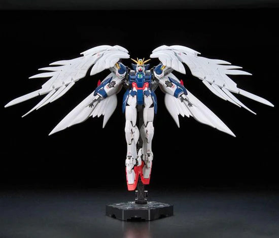 The Wing Gundam Zero Endless Waltz model kit joins the 1/144 scale Real Grade lineup and becomes a fully articulated figure when completed. This version of the Wing Gundam Zero EW is built on a "Zero Frame," which allows for amazing posability. Some of the feathers on the model's wings are also poseable thanks to unique joints. The model comes with two buster rifles which can be joined to form one giant weapon.